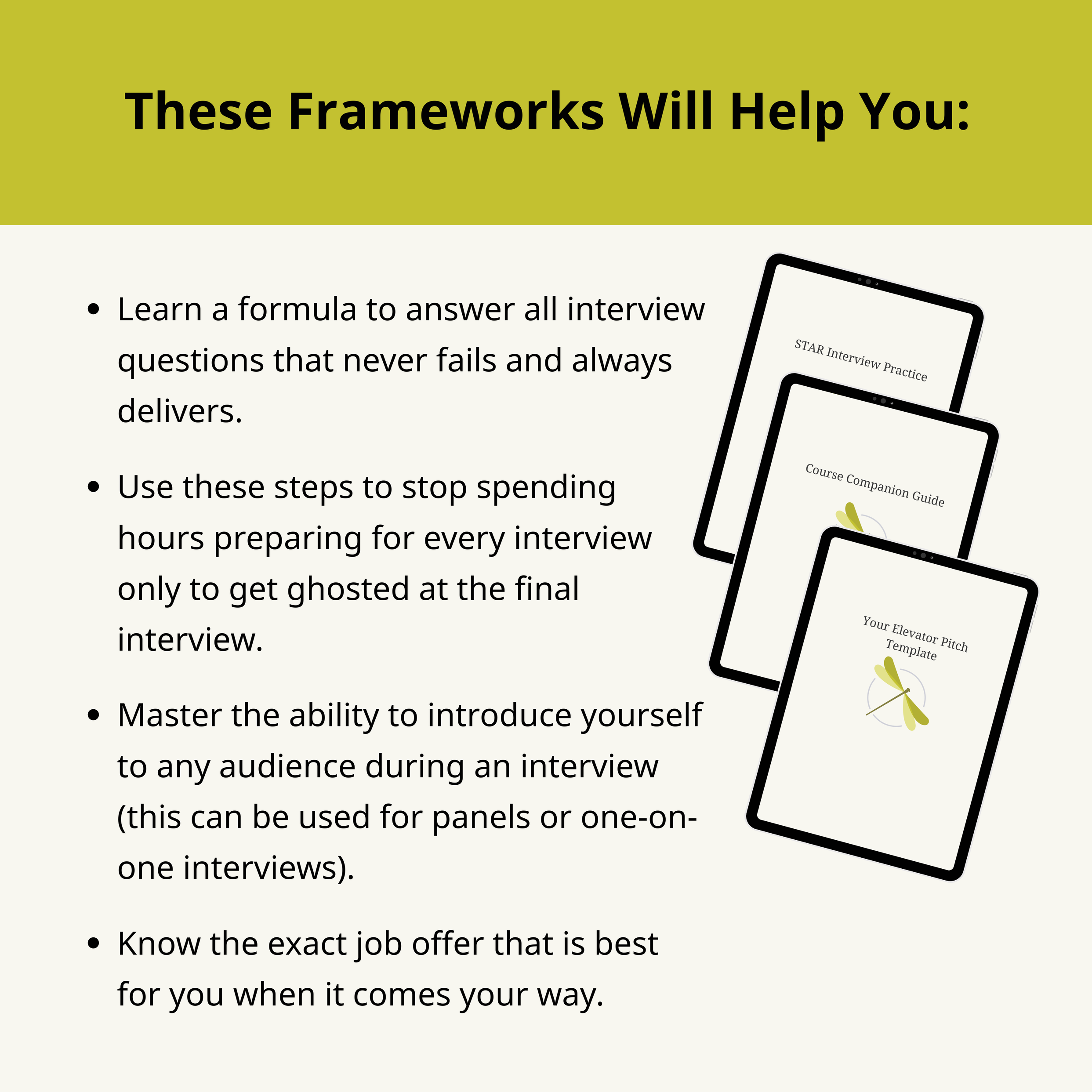 Elevator Pitch Template: Teaches you how to introduce yourself in the interview and actually ENJOY your own story. ($87 value)